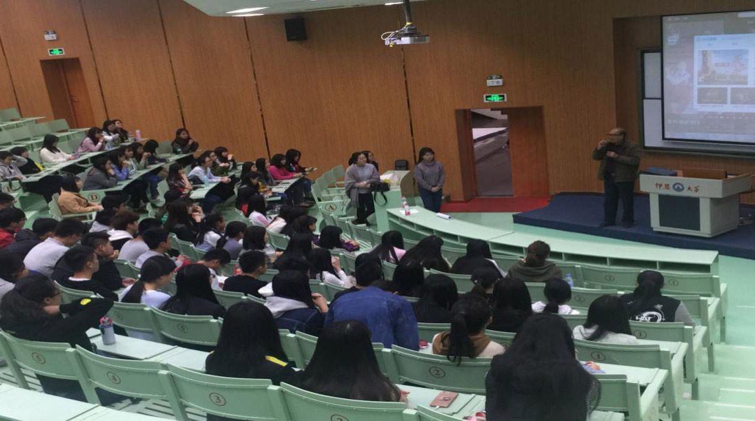 陈日升老师的到来非常鼓舞人心。他详细地介绍了《蓝蓝泉州湾》的创作背景,深情回顾了歌词的内涵以及他创作的心路历程。他给同学们讲了国外的华侨们因为思念家乡,集体合唱《蓝蓝泉州湾》而泪流满面的故事,让在场的师生油然而生生为中华儿女的无限自豪和对伟大祖国的无限热爱。这些故事和场景让同学们对《蓝蓝泉州湾》的感情基调有了更为准确的领会和把握,对陈老的爱国爱乡、对海丝文化、文都泉州的厚重历史有了更为深切的热爱。他悉心指导同学们要准确把握歌词的思想感情、用心真切地唱出这首歌的应有效果,并现场让同学们一一试场,反复揣摩,如切如磋。在陈日升老师耐心指导下,同学们对歌曲处理变得更为细腻,对歌词的思想境界有了更多的领会和提升,对泉州厚重的历史文化有了更为深刻的认识和理解。