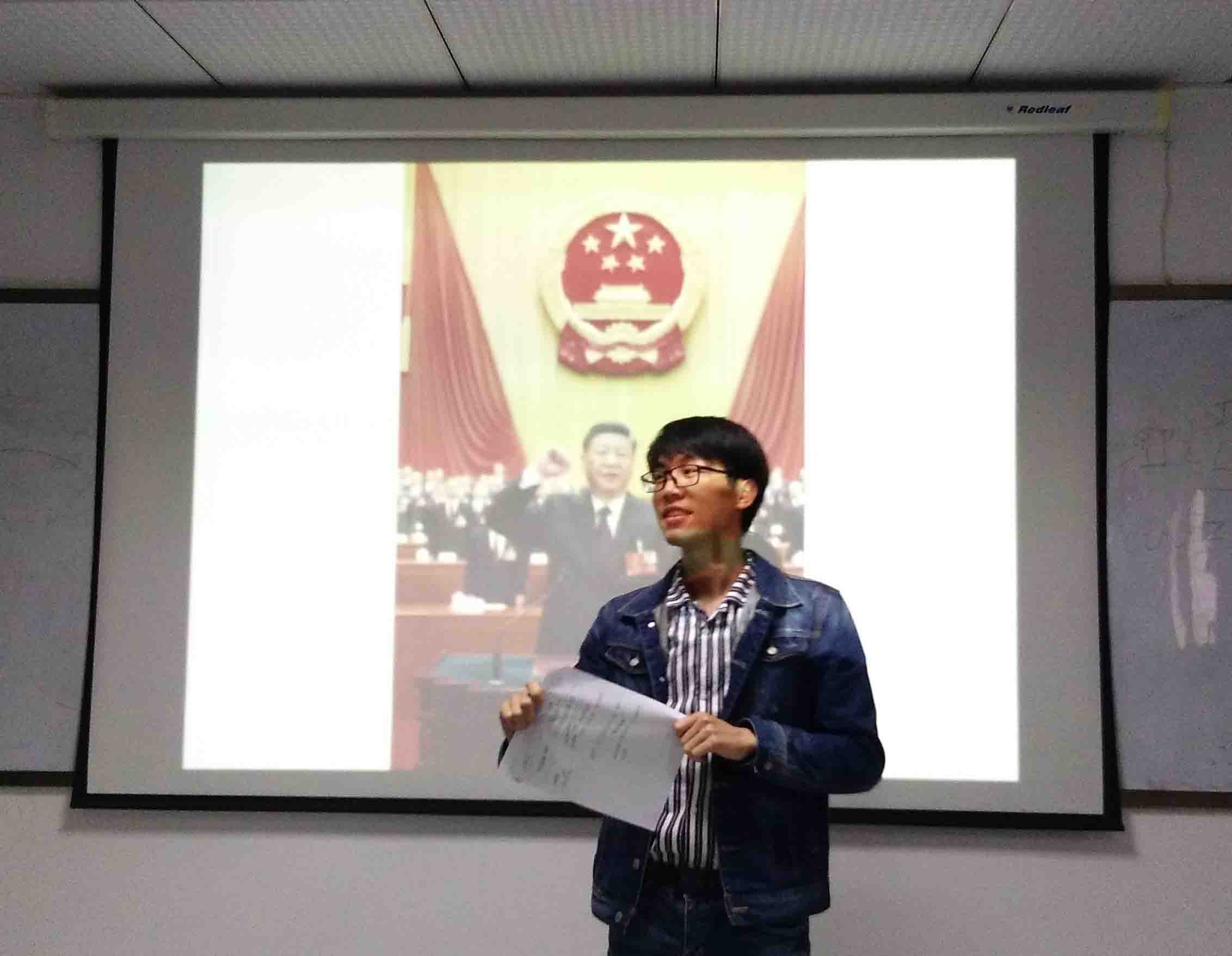 观看视频之前,李少聪老师在为同学们简单介绍了“两会”的精神和概况,并强调了本次活动的意义。
