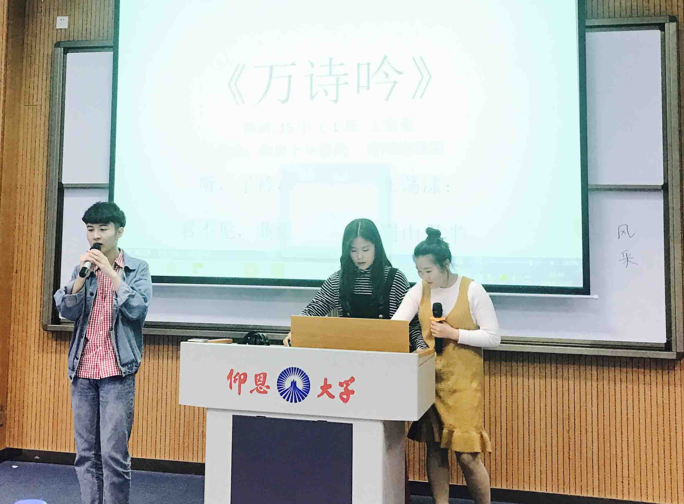 决赛流程分为两个部分,一是PPT展示,二是才艺表演。15中文1班以一张地图切入主题,梦栏同学向大家介绍了班级同学来自不同各个地域,以及班级的获奖情况和干部任职情况等,该班级不管是从团结凝聚力还是班风学风都展现出中文学子风采,由王宗荣同学作词的《万诗吟》才艺表演独具人文特色,展现了深厚的文学底蕴,几次将决赛现场推向高潮。据悉,该班普通话通过率为100%,计算机一级通过率100%,英语四级通过率为68%。