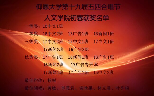 beat365英国官网网站第十九届五四合唱节beat365英国官网网站初赛获奖名单