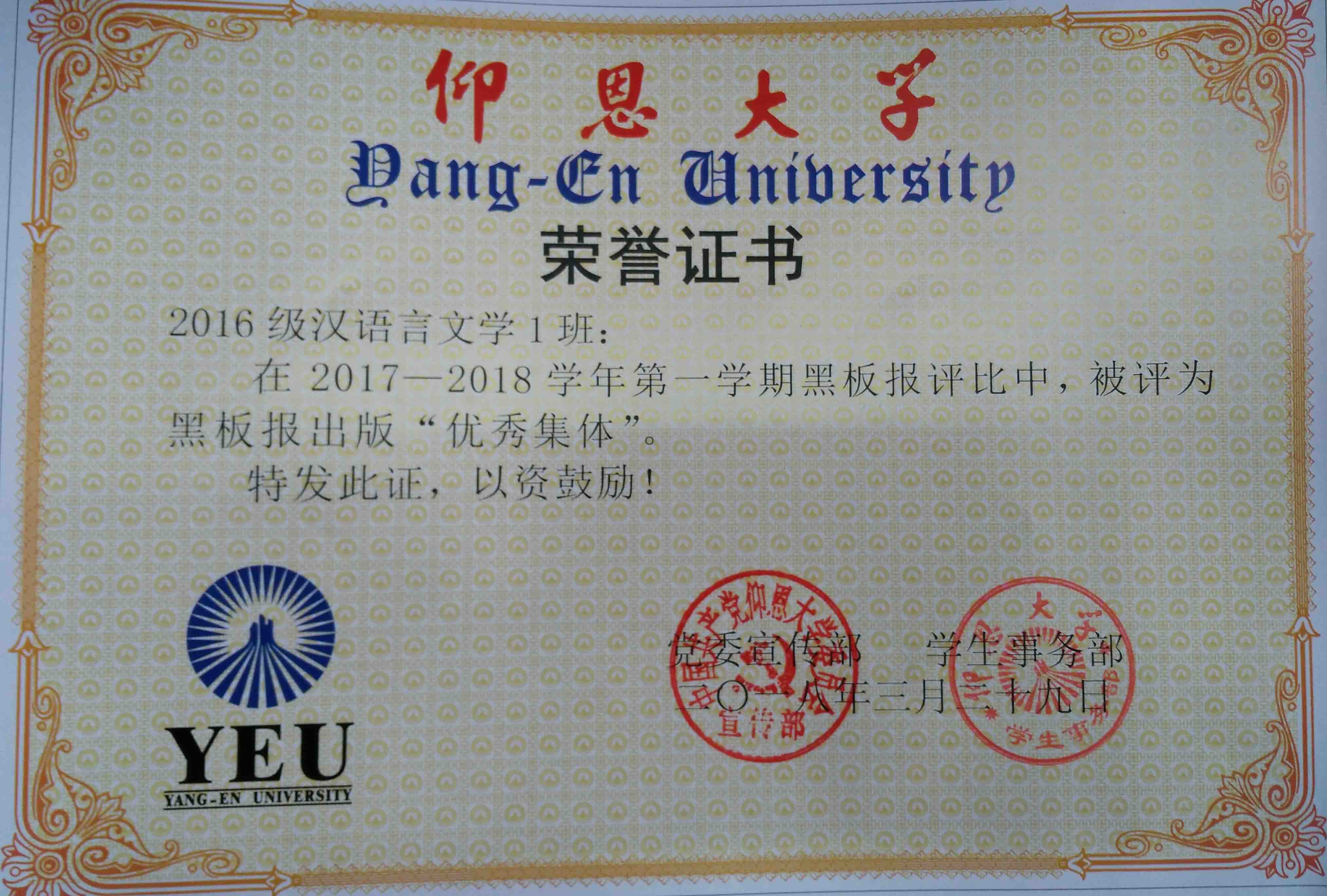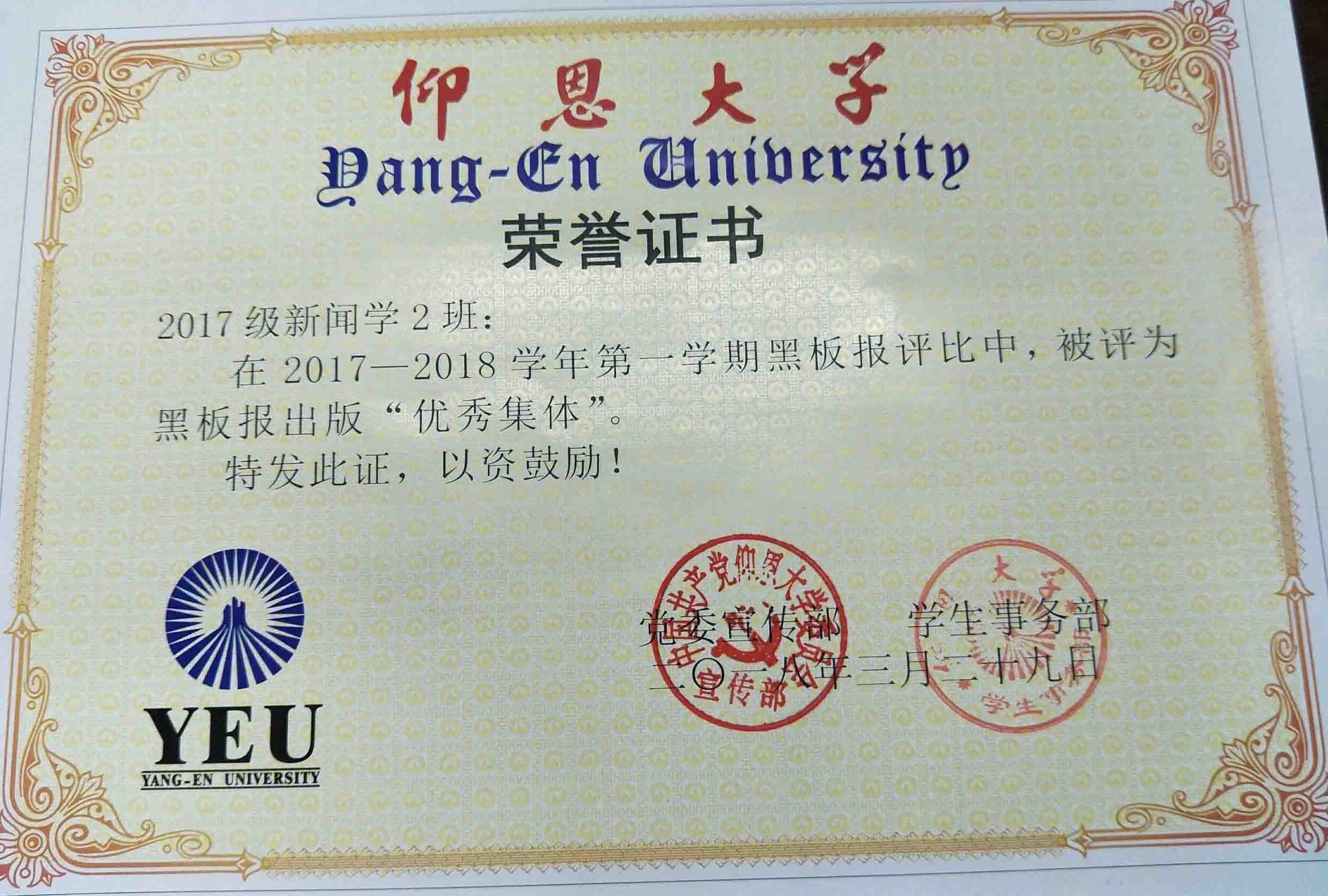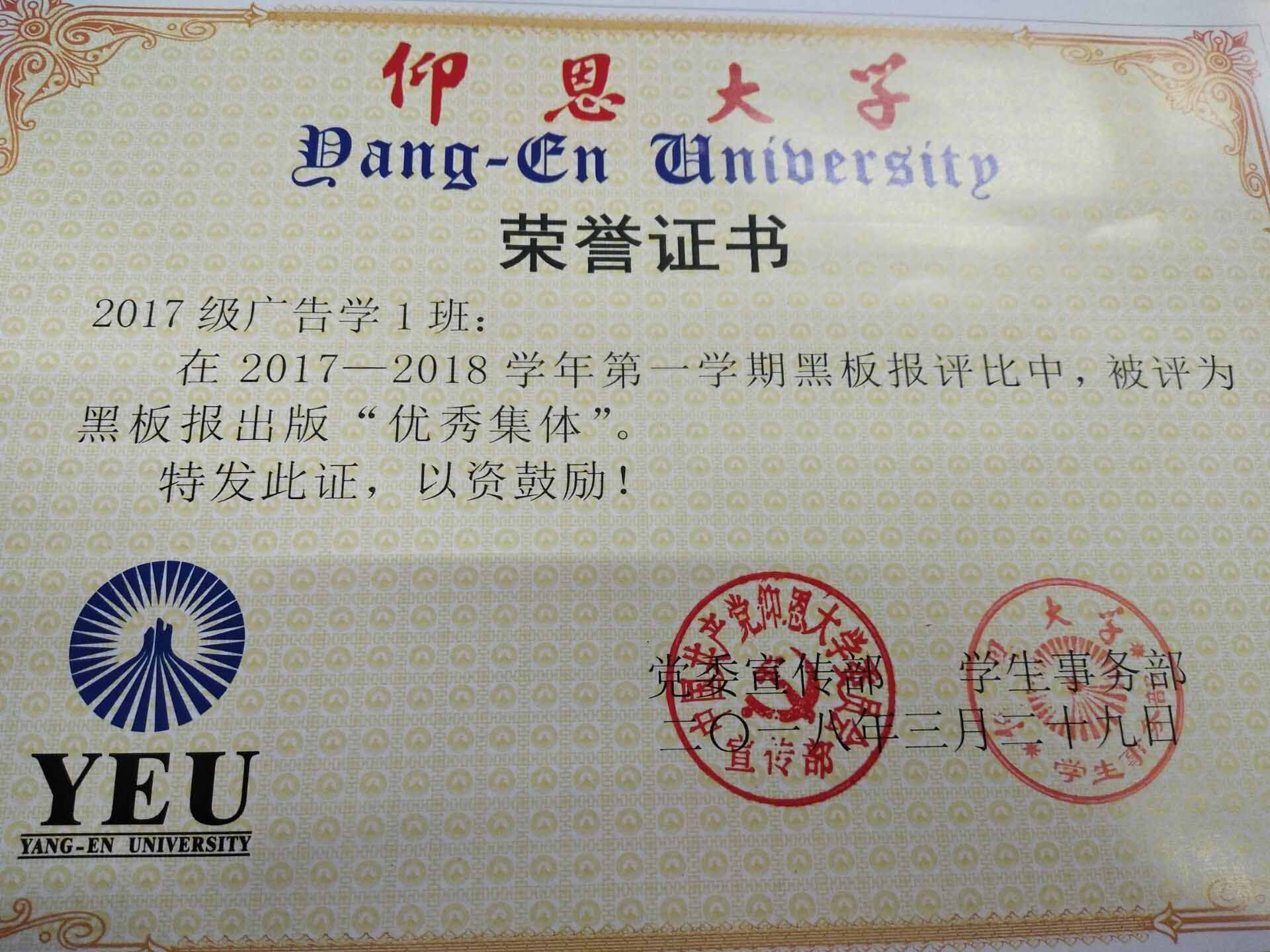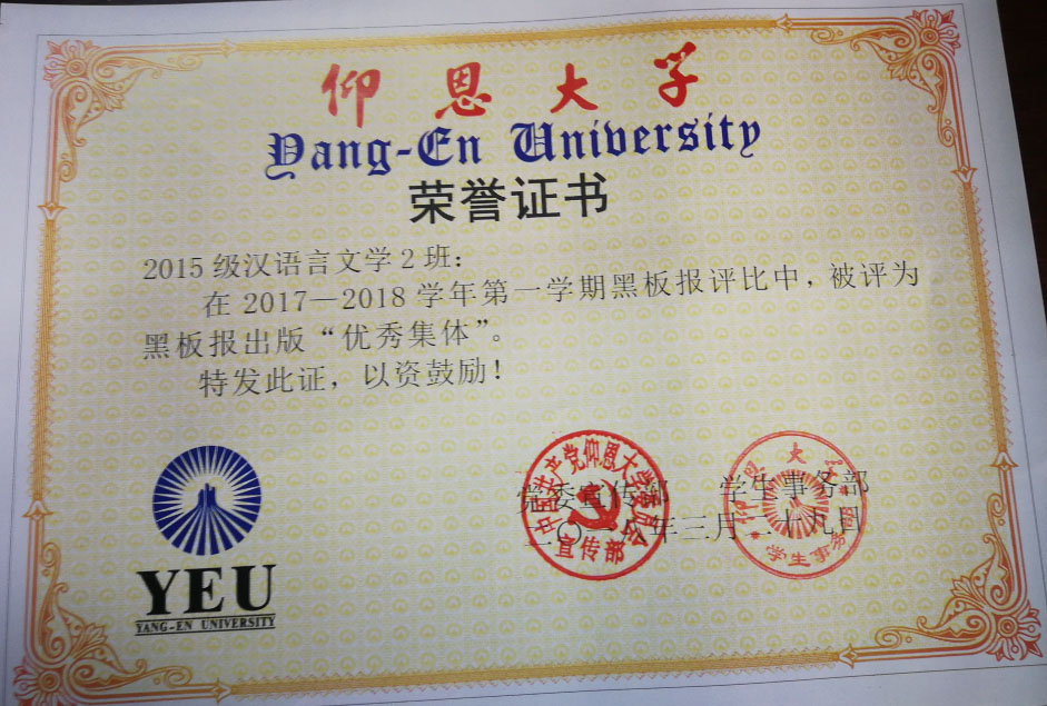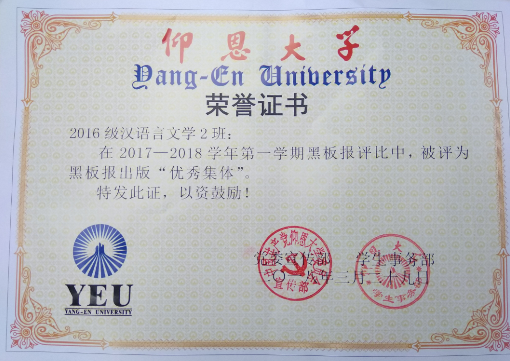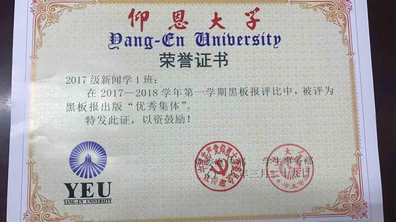 在2017—2018学年第一期黑板报评比中,beat365英国官网网站有5个班级被评为黑板报出版“优秀集体”,他们分别是15新闻学1班、15汉语言文学2班、16汉语言文学1班、16汉语言文学2班、17新闻学1班、17新闻学2班、17广告学1班。