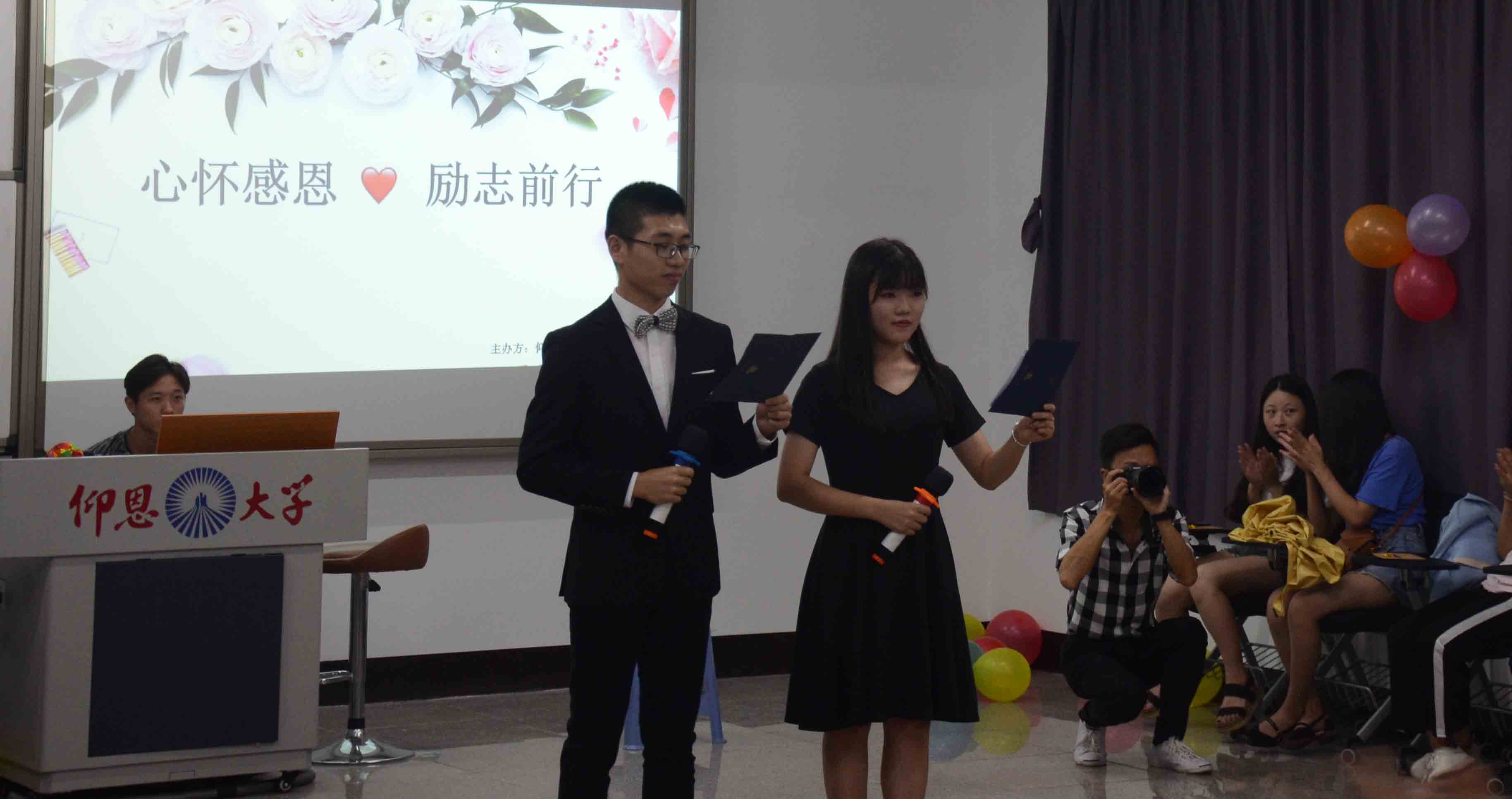 为进一步弘扬和培育中华民族感恩的传统美德,让大学生懂得感恩父母、师长、回报他人、回报社会,培养大学生成为关爱他人、服务社会、忠于祖国、道德高尚的有用之才。6月7日晚,beat365英国官网网站于普照楼205教室举办“助学 筑梦 铸人”主题晚会。出席此次晚会的有beat365英国官网网站党总支书记兼副院长胡友仁、beat365英国官网网站团委副书记曹流、beat365英国官网网站辅导员刘巧玫、陈峰、李少聪、朱婷,以及学务秘书林志荣和学院学生代表。