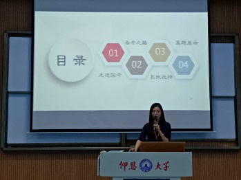 讲师讲授 通过此次讲座,加深了同学们对国家公务员考试与教师资格证考试的认识,细致而有益的备考方案在一定程度上大大提升了同学们备考的信心。除此之外,讲座也为没有意向参加公务员与教师资格证考试的同学提供了其他的选择,如农信社考试、部分银行的春季补录取、金融银行秋季考试等,有利于促进毕业生的就业。