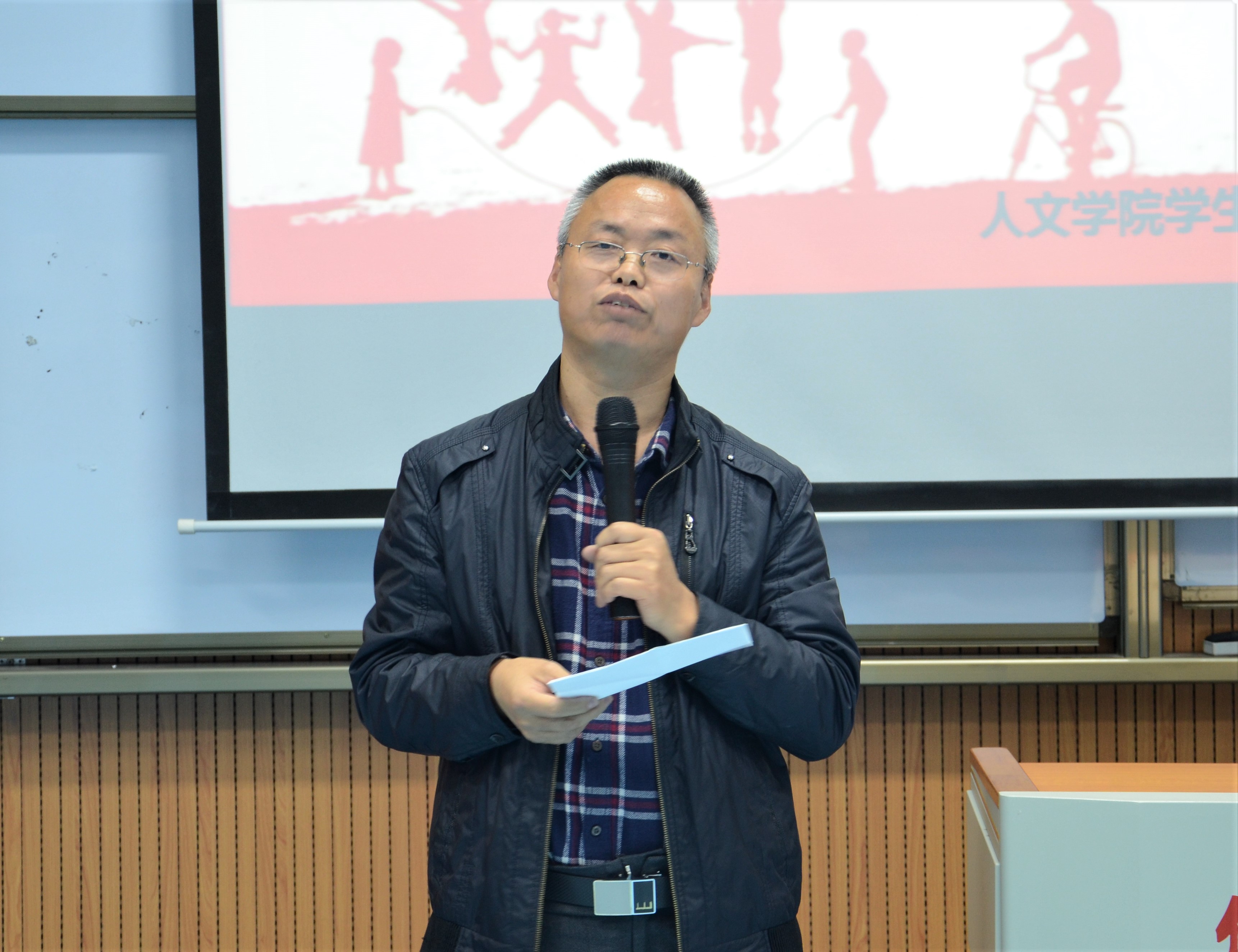 胡友仁老师发言 大会进行至尾声,胡友仁老师总结“人生总要拼搏,越努力,越付出,就会越优秀,让体育的精神燃烧大学四年,呼吁同学们走出宿舍,走向操场,不负青春,不负人文,不负此生!”。