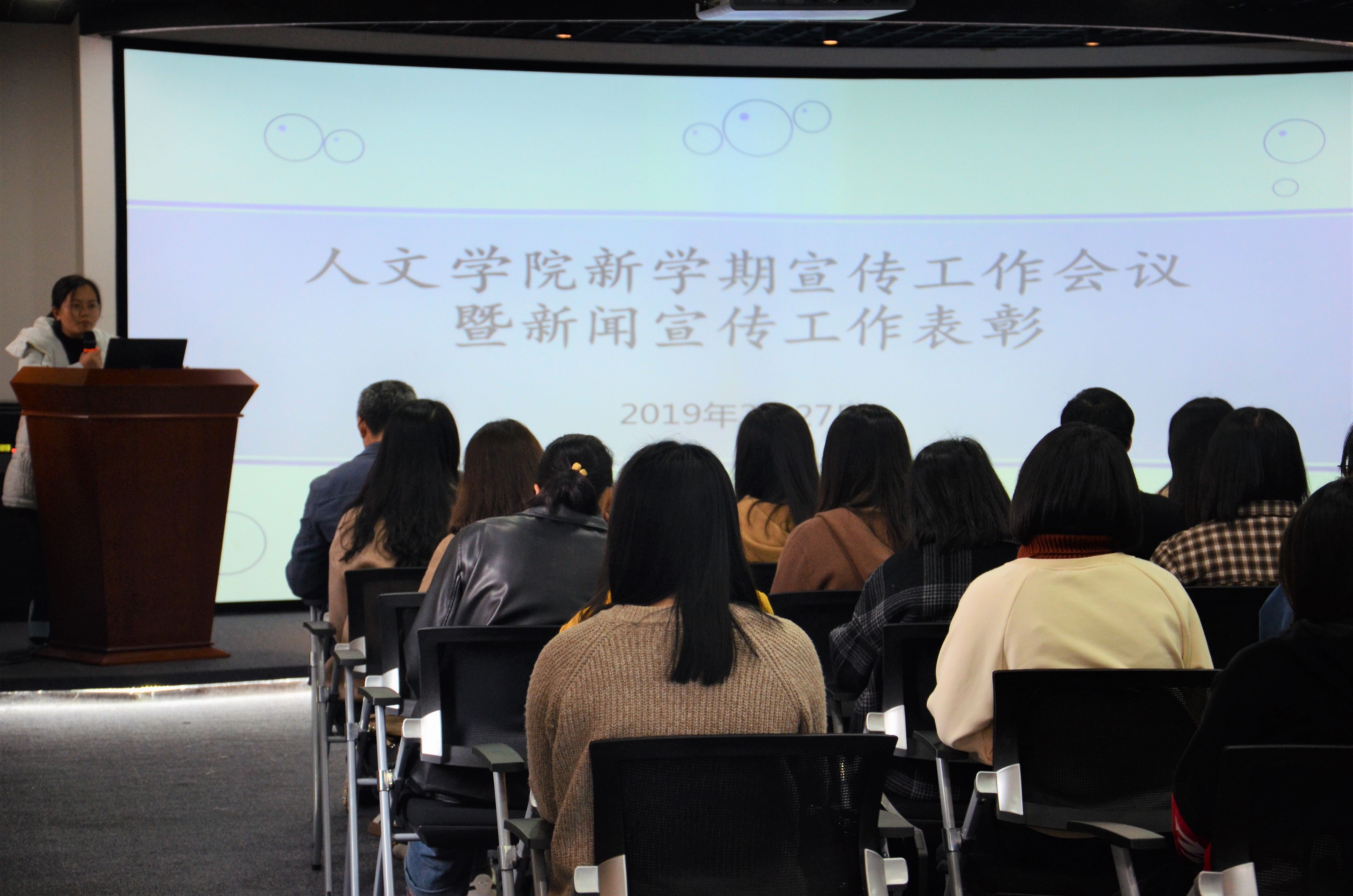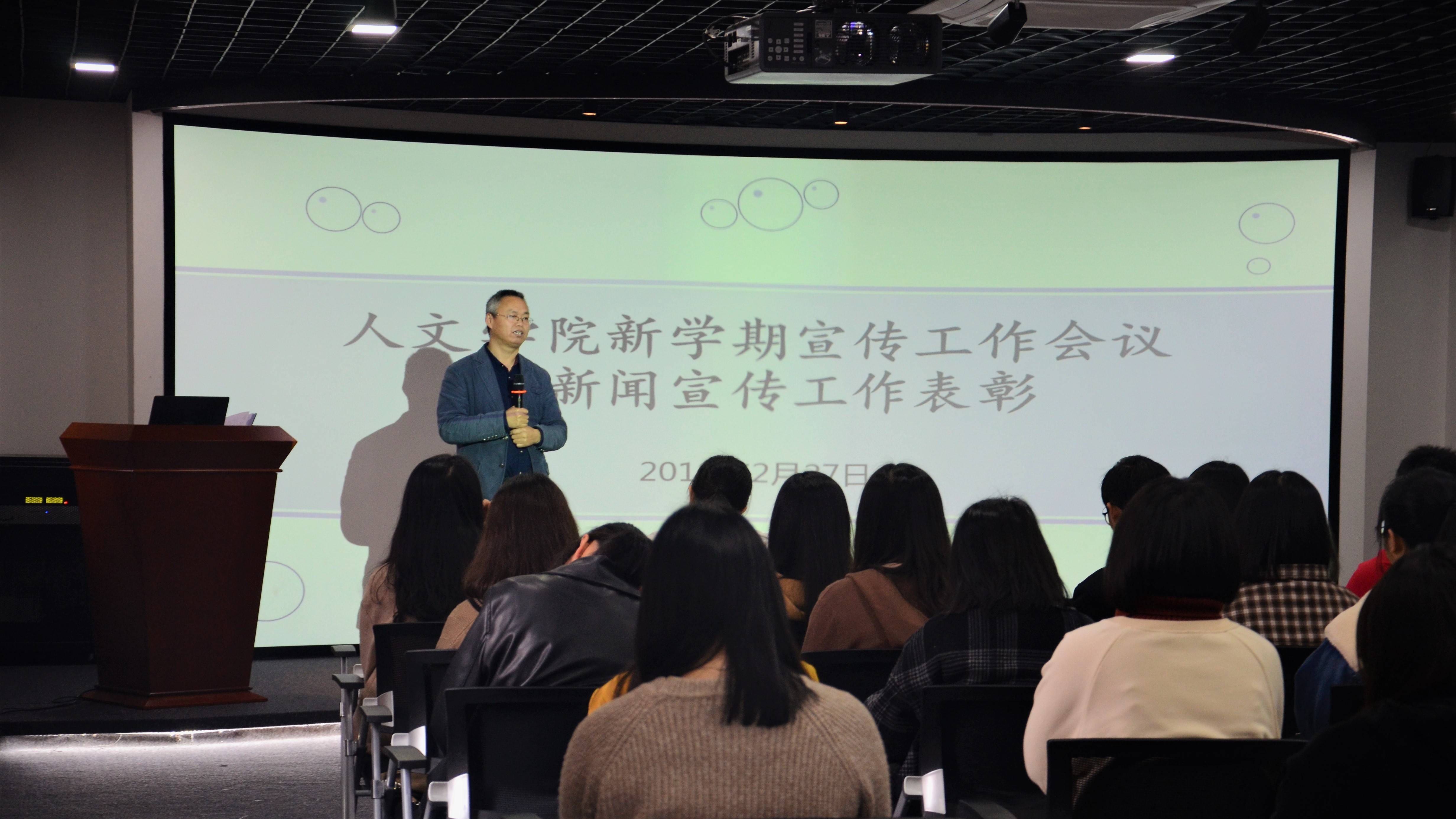 2月27日下午,beat365英国官网网站新学期宣传工作会议暨新闻宣传工作表彰大会在普照楼虚拟仿真实验室召开。beat365英国官网网站党总支书记兼副院长胡友仁、副书记刘巧玫、全院各班级宣传委员、团委、学生会宣传部门以及新媒体团队成员受邀参加本次大会。