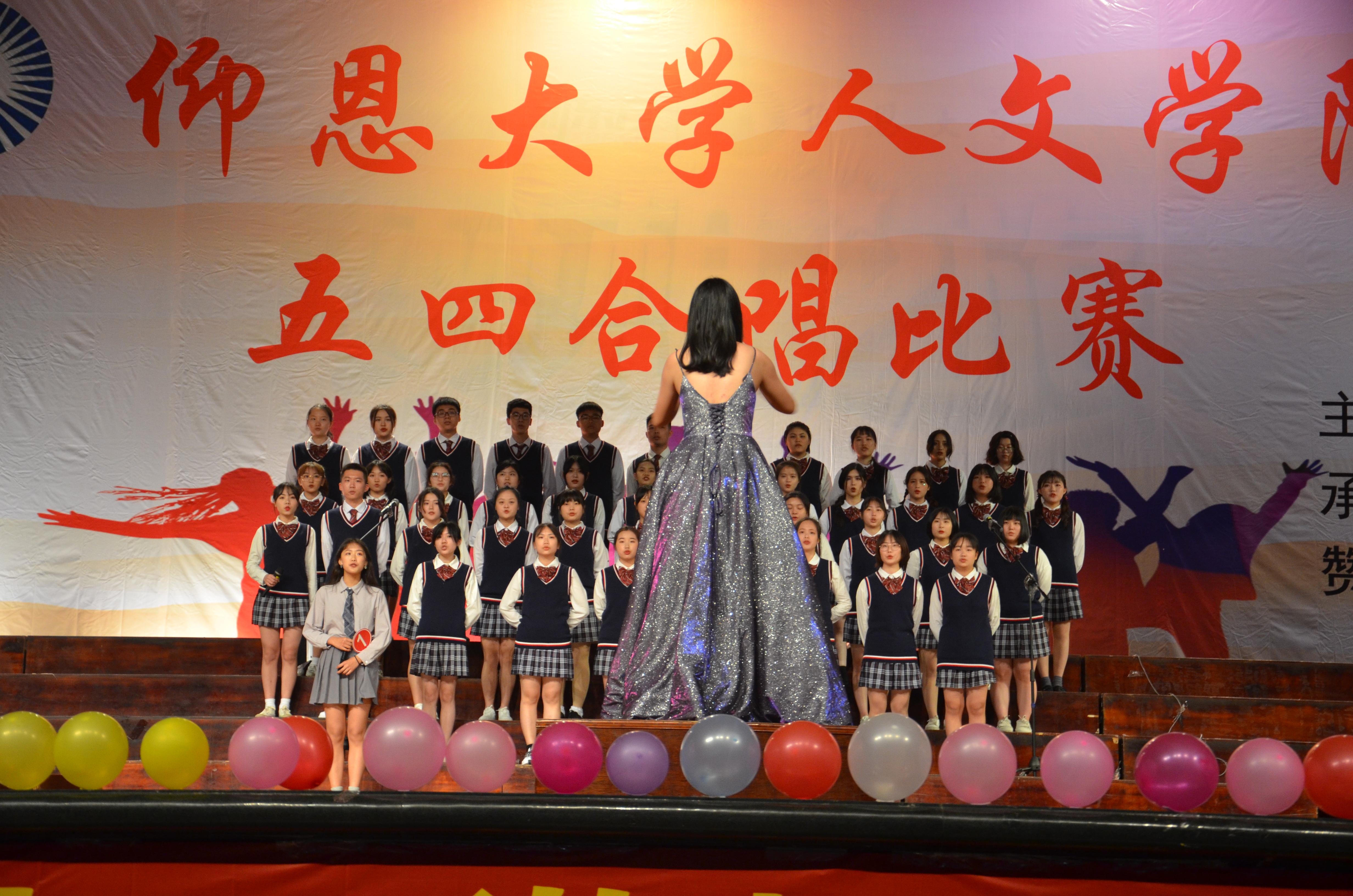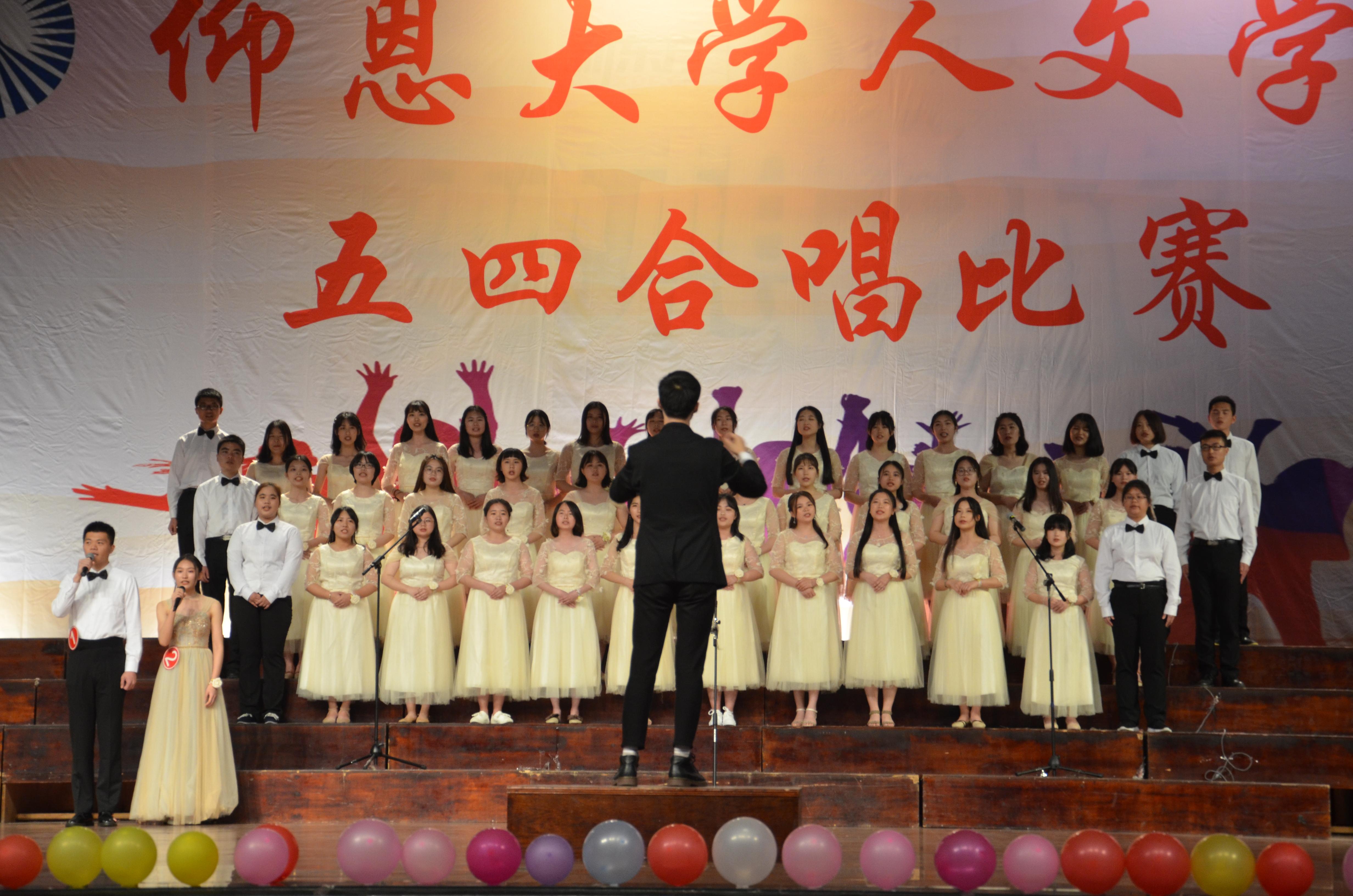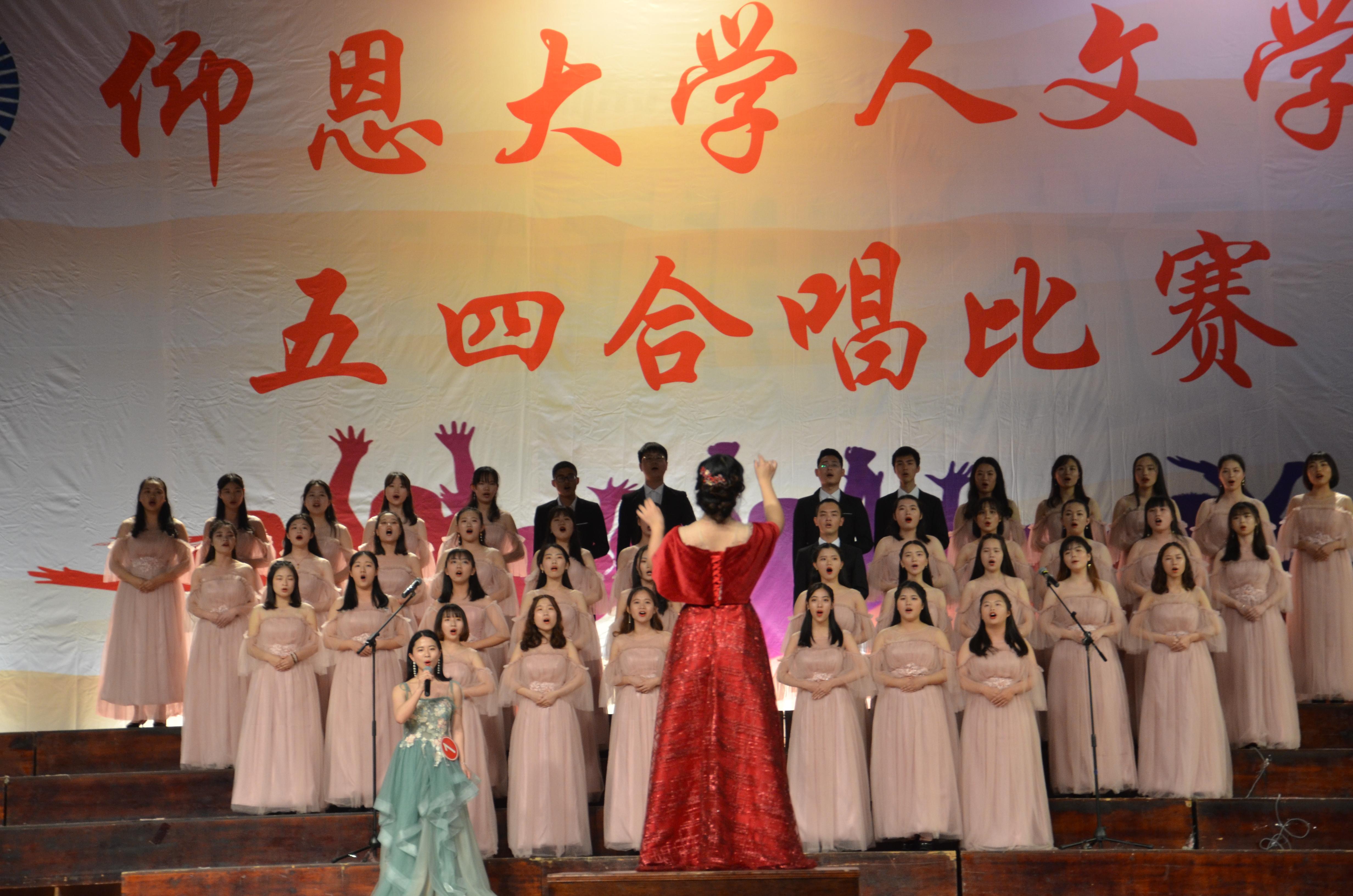 合唱比赛现场 本次合唱比赛是对广大学子进行爱国主义、集体主义和民族精神的生动教育。18个班级围绕“爱国、感恩、奋进”主题,用心歌唱,倾心演绎。在院系班主任和辅导员老师的悉心指导下,各班级利用课余时间精心准备,积极练唱,展现了人文学子爱国爱校、朝气蓬勃、昂扬向上的精神面貌。