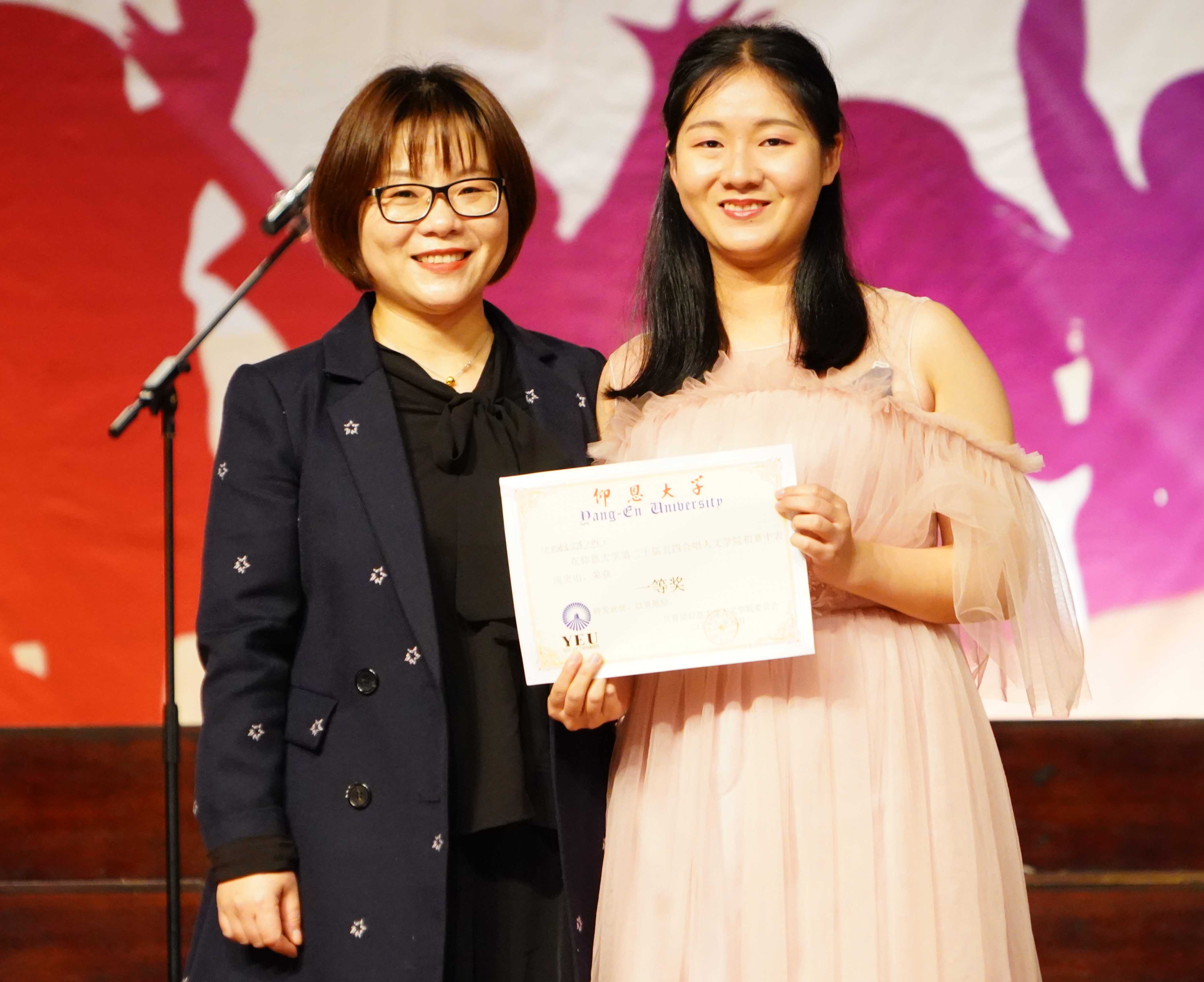 荣获最佳领唱奖16中文二班李慧君