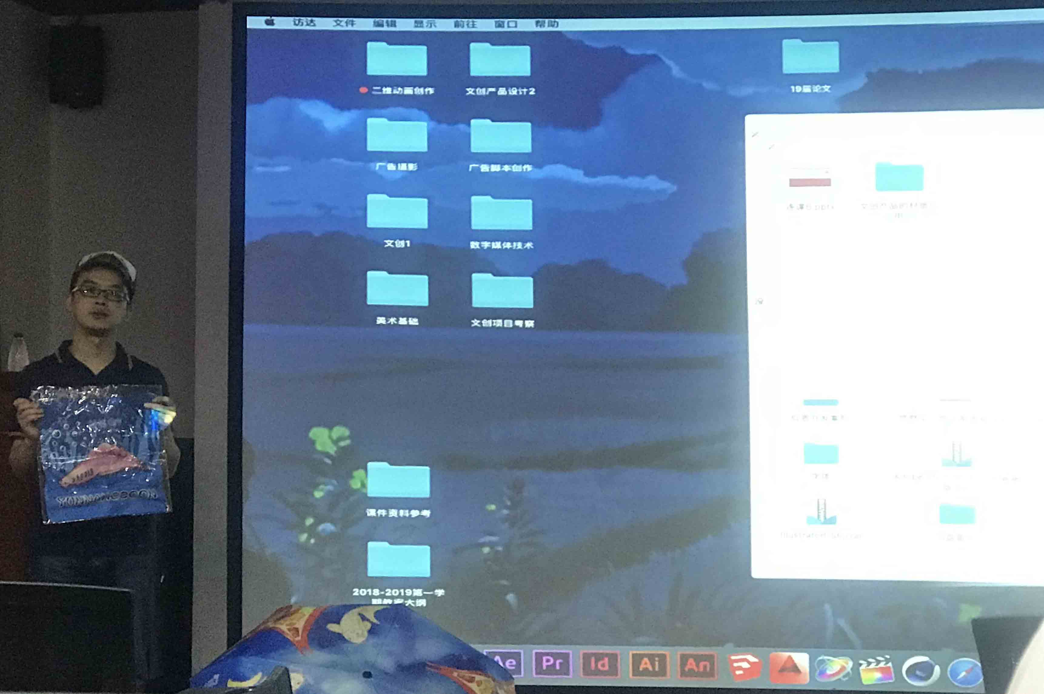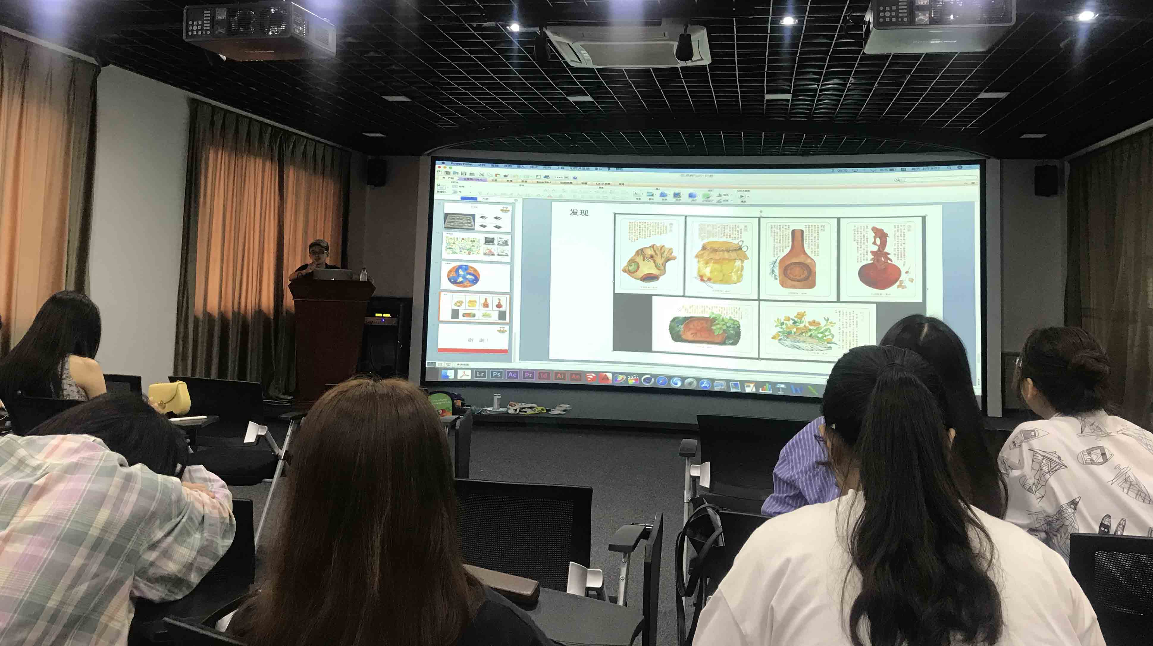 近日,悠然见旅游文化有限公司的设计总监邓才炳老师为2017级与2016级文创班学生讲授“文创产品设计”专题课程。