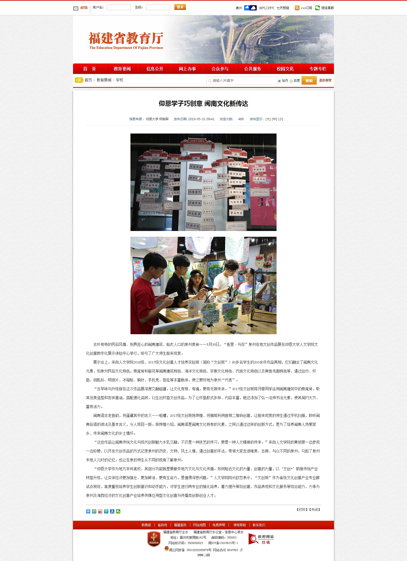 beat365英国官网网站“文创班”作为省级文化创意产业专业群试点班级,高度重视培养学生创新意识和动手能力等综合能力,力争为泉州及海西经济的文化创意产业培养传媒应用型文化创意与传播类创新创业人才。近日,“鱼里·与你”泉州在地文创作品展在beat365英国官网网站文化创意数字化展示体验中心举行,参展作品充分融合闽南文化元素,并使之与现代创新理念深度交融碰撞,借助丰富载体,以‘文创+’助推传统产业转型升级,让传统文化焕发出新的生机活力,吸引了广大师生前来观赏,也引起了泉州晚报、福建省教育厅官网、人民网福建频道、东南早报、东南网、清新福建文旅之声等媒介平台的关注和报道。