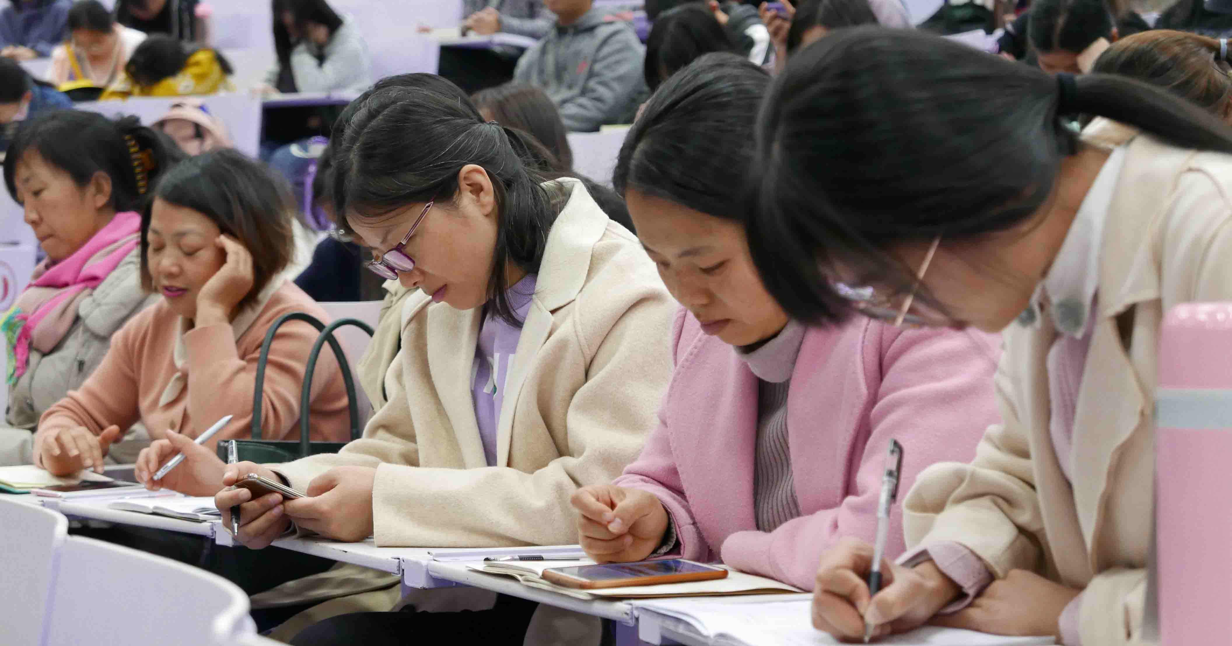师生认真听讲 两个多小时的分享,新颖、实用、活泼,赢得在场师生的阵阵掌声。