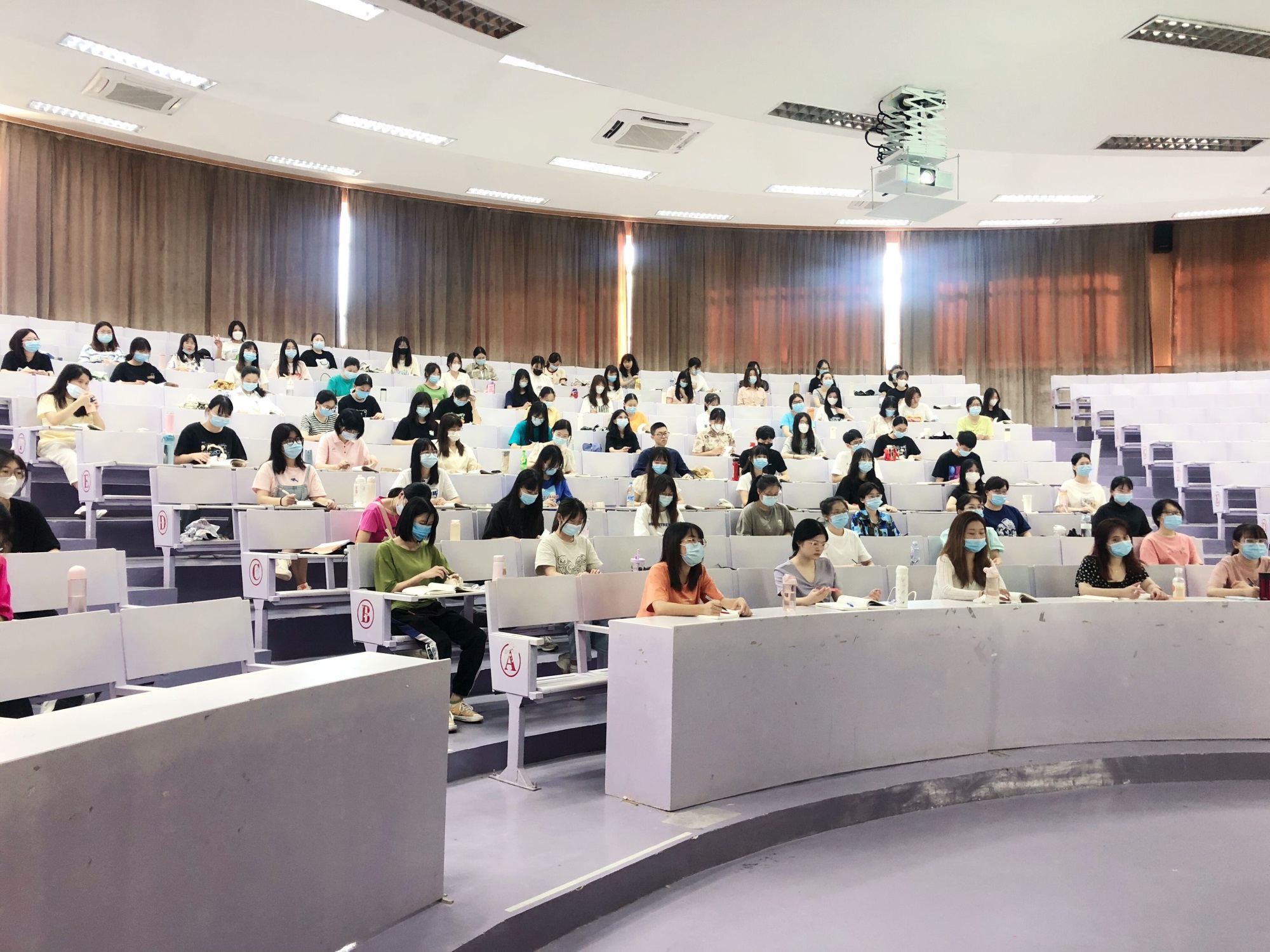 从检查情况看,beat365英国官网网站教学秩序井然。恢复线下教学情况良好,全体教师能够按照教学规定,准时到岗,材料齐全,准备充分,教学认真。学生出勤情况良好,以饱满的精神状态投入到了学习当中。21级新生更是以积极向上的面貌来对待这属于他们的第一堂线下课,早在八点前就已经在教室里开始预习三四节的课程。
