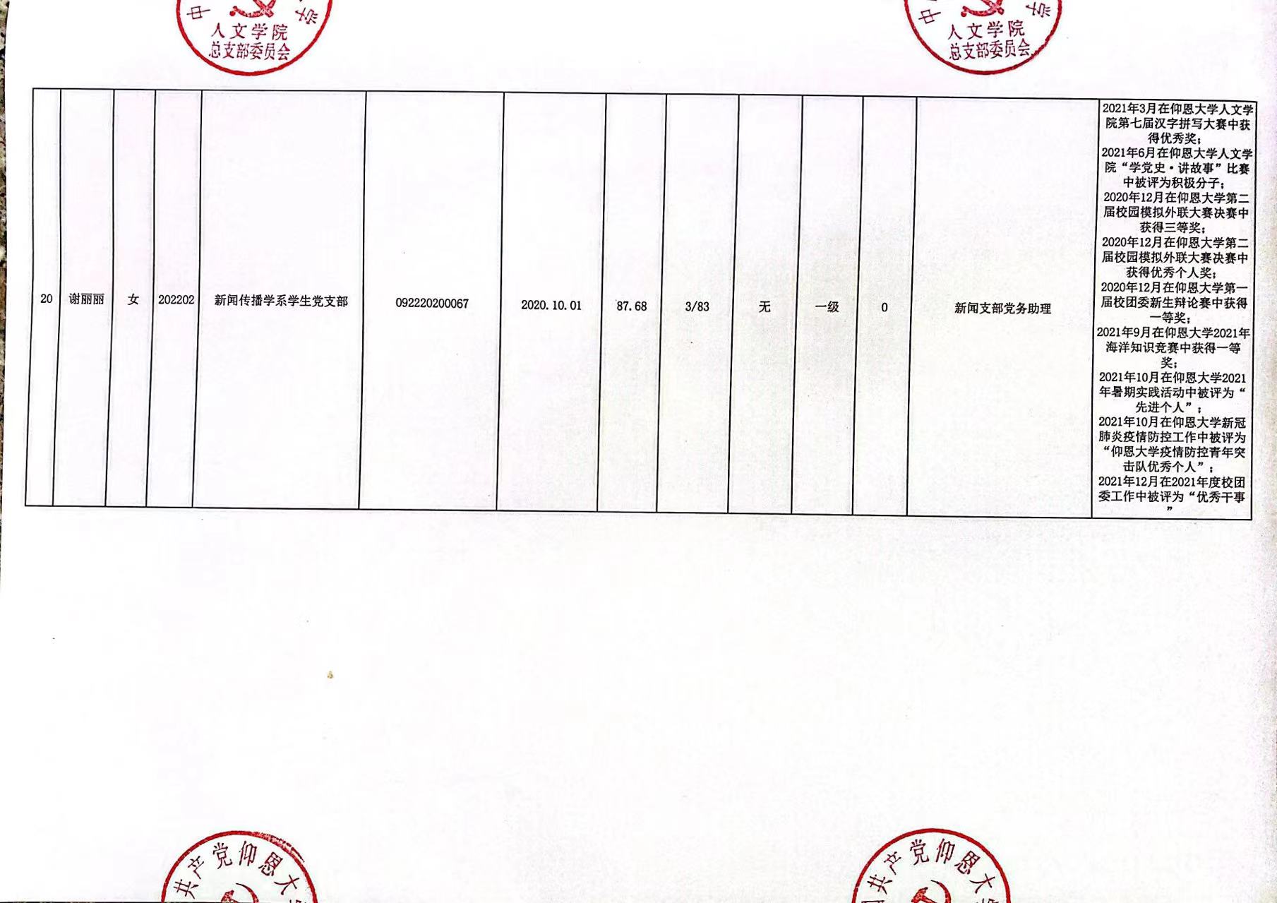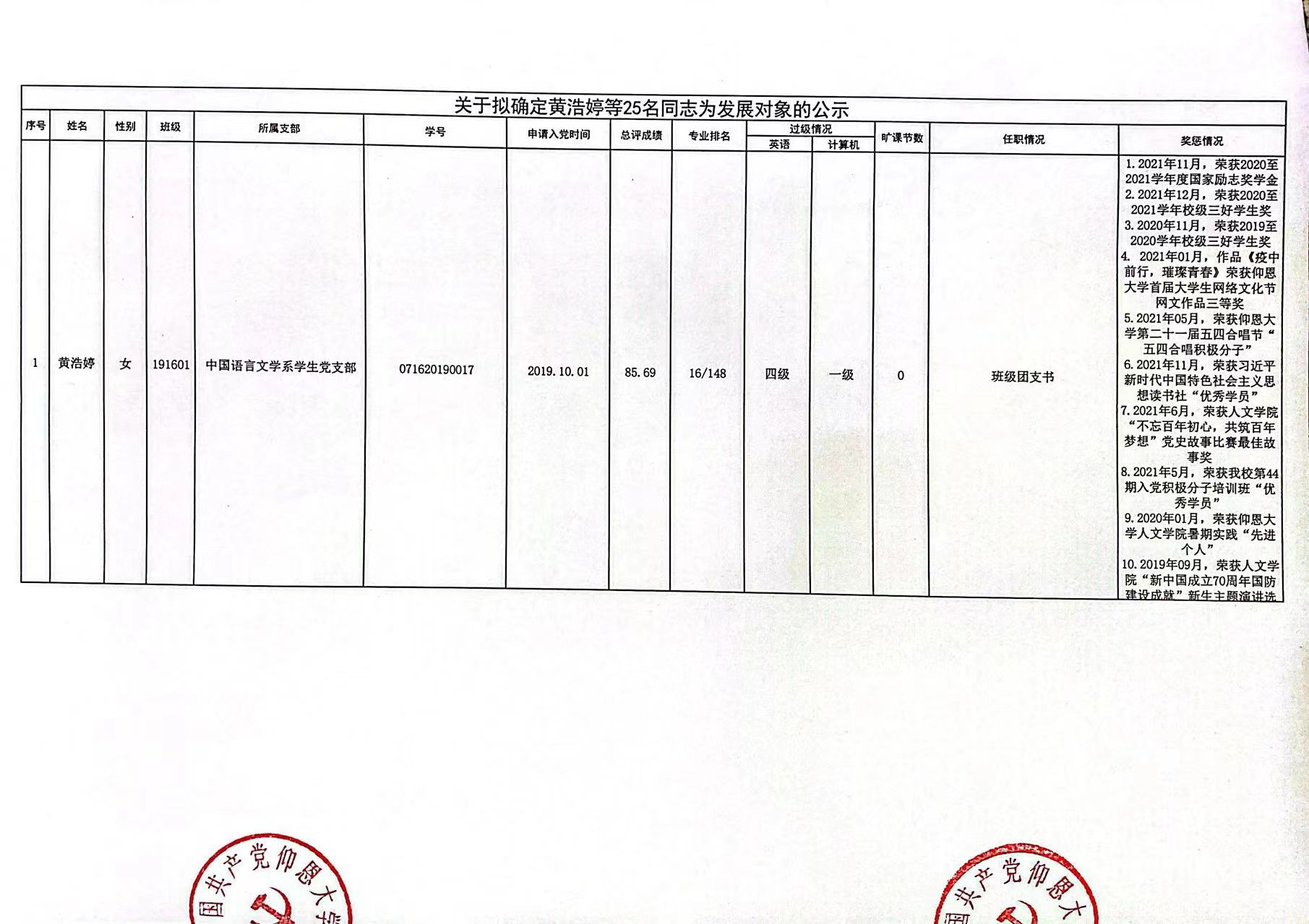 根据《中国共产党发展党员工作细则》及中共泉州beat365英国官网网站党委党员发展要求,经中共beat365英国官网网站总支综合党内外群众意见以及本人综合表现情况,拟确定苏淑霞同志和黄浩婷等25名同志为党员发展对象。