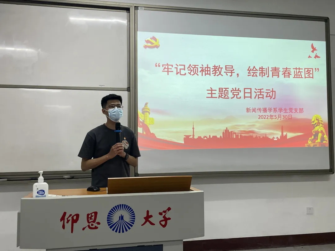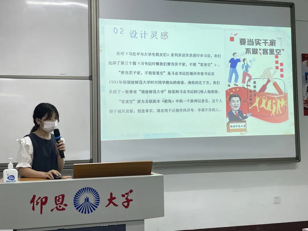 2022年5月30日,新闻传播学系学生党支部在仰恩楼C1—303召开“牢记领袖教导,绘制青春蓝图”主题党日活动。本次党日活动中,新闻传播学系学生党支部的党员同志们通过学习,从《习近平与大学生朋友们》系列采访实录内容为素材,进行主题海报设计,并分享海报设计方案与感想。