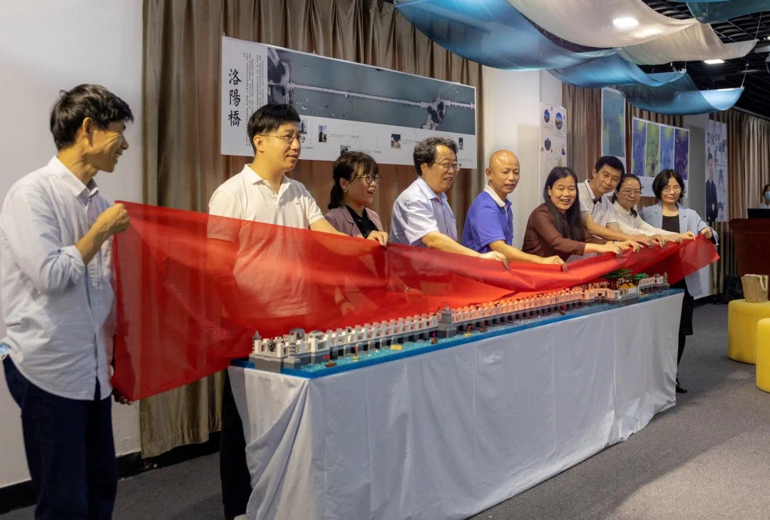本次启动仪式共有四项议程。首先由beat365英国官网网站常务副校长魏杨青教授开场致辞,魏杨青教授表示,本次活动的成功举办既是beat365英国官网网站教学改革的重大成果,也是相关设展团队创新精神的重要体现。紧接着,由出席本次活动的领导和嘉宾共同为beat365英国官网网站首届世遗文化宣传周系列活动揭幕,幕布下是由积木搭建而成、1:200等比创造的洛阳桥模型。