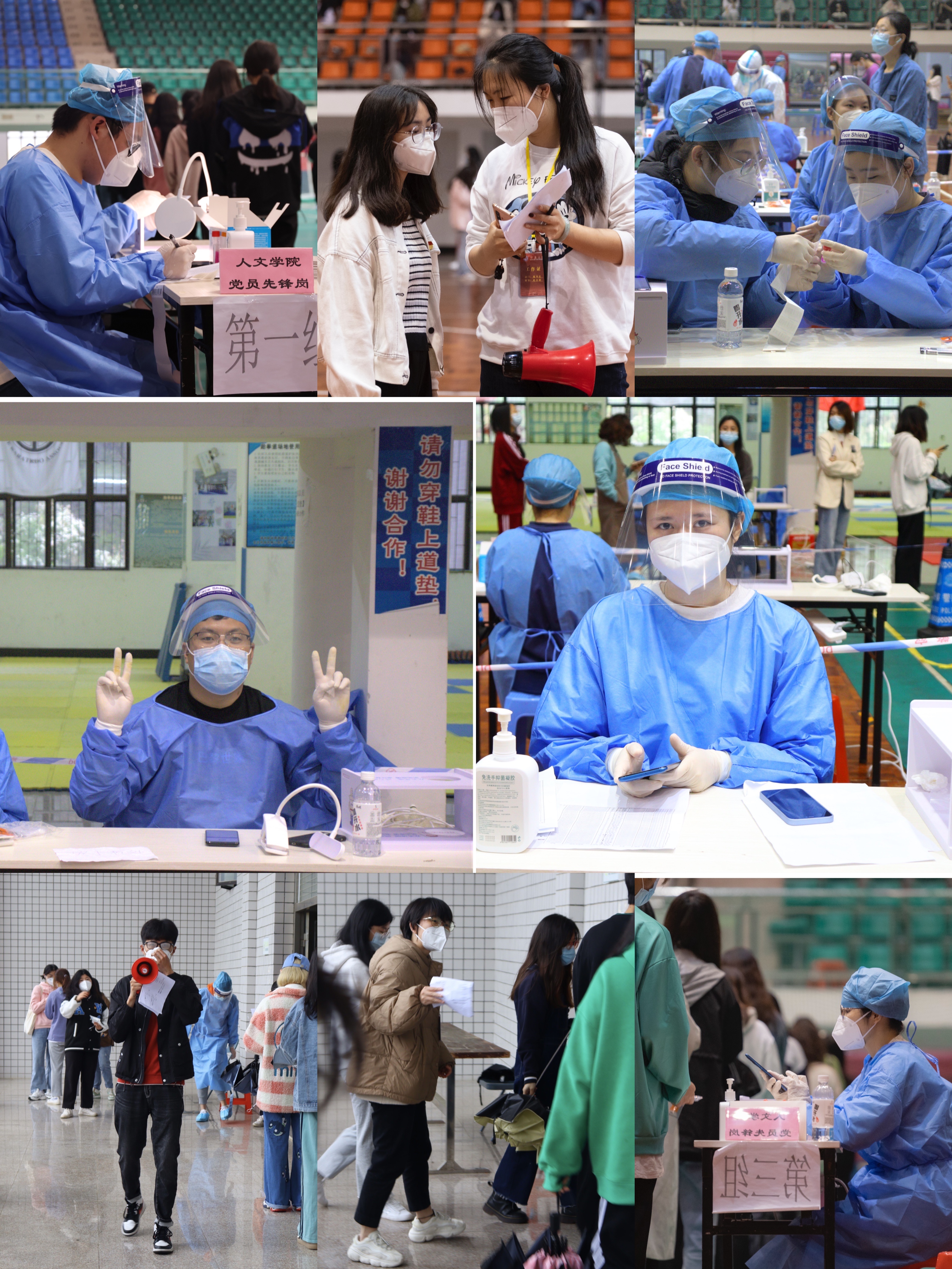 党旗飘扬在“疫”线,人文教师助战疫。欧怒、岳秀文、朱婷、王勇浜、李育瑜、王君婷、邵梓隽、唱菲璠、戴舒容、谢日菲、尚可、许夏晴、周艺欣、李荣坤、林丹、袁亚慧等党员教师和入党积极分子闻令而动,挺身而出。在beat365官网的核酸检测现场,担当起防疫“排头兵”,有序组织学生们排队进行核酸检测、协助进行身份信息采集工作、宣传疫情防控知识等相关工作,充分发挥党员先锋模范作用,用实际行动为beat365官网师生安全筑起坚固防线,让党旗在战“疫”的一线高高飘扬。