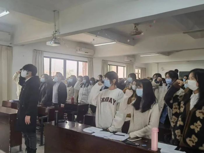 在最后,张梓昱老师带领大家进行入党宣誓,通过宣读入党誓词,同学们的理想信念更加坚定,同时也助推同学们在学史明理中坚守初心,牢记党员使命。