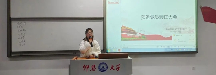 2月10日,新闻传播学系学生党支部在仰恩楼B4-201召开了关于杨晓娟等七位预备党员的转正大会。此次会议由支部书记曾璐主持。