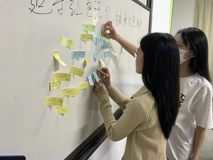 活动中,党支部成员集体观看红色主题微电影《在场》,在场的党支部成员深受感触。观看结束后,党支部成员在便利贴上写下对先烈的学习感悟并粘贴在黑板上。“我们理应牢记历史,纪念先烈,接过这时代的大旗,乘风破浪,为社会建设做出贡献。”李培彬同学写道。活动最后由新闻传播学系学生党支部书记吴萍萍、曾璐同志作活动总结。革命先烈精神承载着党百年的奋斗与辉煌、光荣与梦想,是一笔十分宝贵的精神财富,是激励中国人民砥砺前行、开拓进取的强大精神动力。吴萍萍总结道:“热血铸丰碑,英魂垂青史。作为新时代的大学生我们理应继承先辈遗志,用奋斗书写青春,不负韶华。”