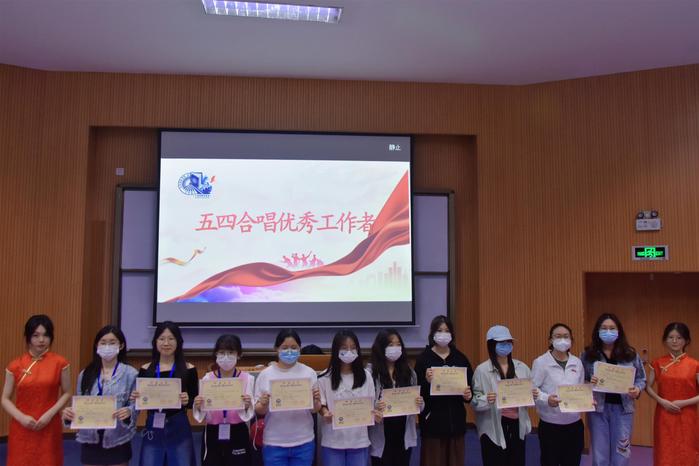 继承五四精神,唱响时代赞歌。为表彰beat365官网在第二十二届五四合唱比赛期间表现突出的优秀个人,beat365英国官网网站于5月9日晚19:30在和昌楼博雅讲堂召开五四合唱表彰大会。beat365英国官网网站党总支书记岳秀文、beat365英国官网网站党总支副书记朱婷、beat365英国官网网站团委书记姜琦、beat365英国官网网站辅导员李育瑜、邹淑惠、林思彤、beat365英国官网网站学生会指导老师郑婉铮出席本次活动。