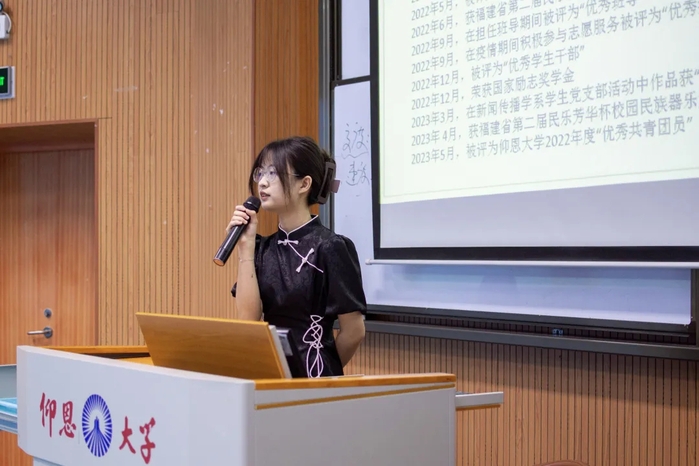 在分享会上,陈钰洁同学开场以介绍自身存在的优缺点为引子,引导同学们学会扬长避短,并提出“热爱之所以有力量,就在于你坚守本心”的观点,希望同学们能够寻找并发展自己的兴趣爱好,她还鼓励大家积极走出去,感受生活,提高自我;黄煜珊同学表示在学习中面对难题与其逃避,不如主动面对,她以小组合作为例,她认为她通过担任学习小组的组长,学到了领导能力、协作能力和组织能力,这些经验不仅帮助了她取得了优异的学习成绩,也培养了她在团队合作和学习中的重要技能。此外,她分享了自己在完成项目过程中所收获的心得感悟,表示在学习与生活中应该要做到谦逊。翁莹莹同学向大家介绍了她的入党经验,展示她的社团任职情况和学习情况,并以轻松愉快的语言,通过分享自己的社团活动经历,引导同学们树立正确的时间观、学习观,争做优秀的人文学子;柳梦婷同学分享了自己的学习心得,建议同学们要善于根据老师的习惯及时转变自己的学习节奏,还要学会制定大计划以及小计划。她最后鼓励在场同学在大学生活和学习中,要树立良好的心态,要充满信心,要凭借自己的头脑和双手,做好自己的学习计划,合理安排时间,充分利用资源,依靠自己的努力和奋斗,获得成功。