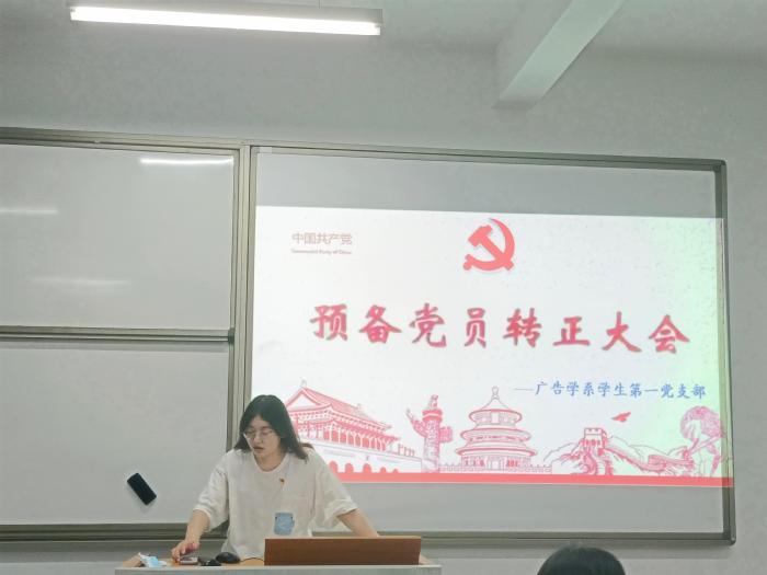为了进一步壮大党员队伍,为广告学系学生第一党支部注入更多新鲜血液,增添党员队伍的生机与活力,6月5日晚上7:30广告学系学生第一党支部在仰恩楼D1-401教室顺利召开了预备党员转正大会,讨论关于黄春燕等3位预备党员的转正申请。本次会议由党支部书记戴舒容同志主持召开,广告学系学生第一党支部全体党员出席会议。
