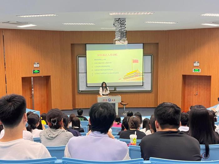 为增强新生对党的认识,端正入党动机,了解入党的基本程序,引领新生扣好入党的“第一粒扣子”,2023年9月11日晚19:30,新闻传播学系学生第一党支部于海纳讲堂召开2023年度新生入党培训。党支部书记江雯茜老师、全体党务助理以及2023级新闻传播学系新生参加本次培训。