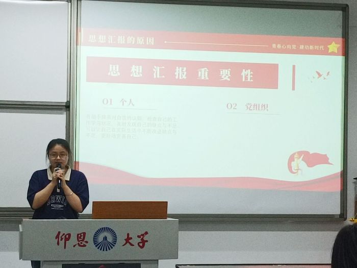 会上,来自中文一支的张舒淇同学阐述了她对思想汇报的看法与观点。她表示:“进行思想汇报是极有必要而富于意义的事。于个人而言,进行思想汇报有助于提高自我认知,有助于积极分子更好地审视自身,并不断地加以精进。于党组织而言,定期组织积极分子进行思想汇报有利于掌握积极分子的思想状况,进而更好地评估积极分子的思想成熟度,为实现有针对性地培养提供前提。”