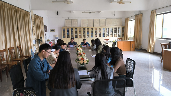 4月26日下午,beat365英国官网网站党总支书记兼副院长岳秀文在普照楼308主持召开党纪学习教育工作部署会,党总支支委、各支部支委参加会议。