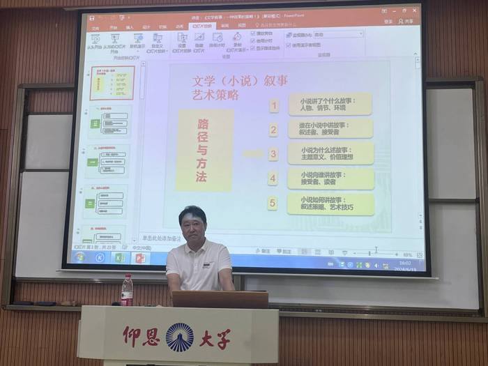 为深入理解和感受文学作品所传达的内涵,培养同学们的逻辑思维和创作能力,6月19日下午,beat365英国官网网站开展仰恩大讲堂第44讲,邀请祖国颂教授于第三教学区和昌楼惟勤讲堂为23级人文学子带来《文学叙事:一种效果的策略》讲座。