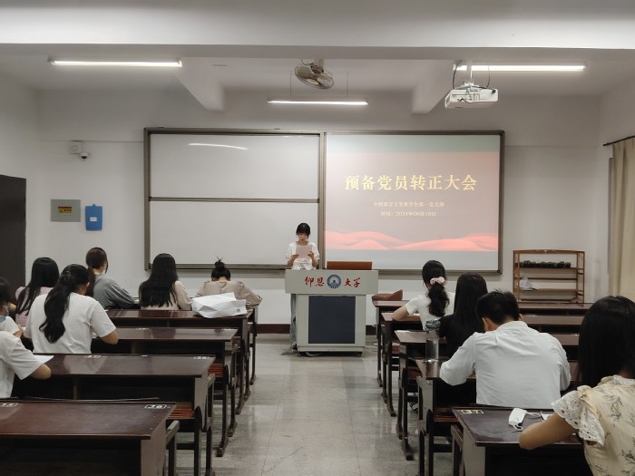 进一步加强党组织建设推动党内民主进程促进党支部成员思想政治觉悟的提升2024年6月18中国语言文学系学生第一党支部在仰恩楼C3-301召开预备党员转正大会支部书记唱菲璠主持本次会议支部全体党员参加了本次会议。