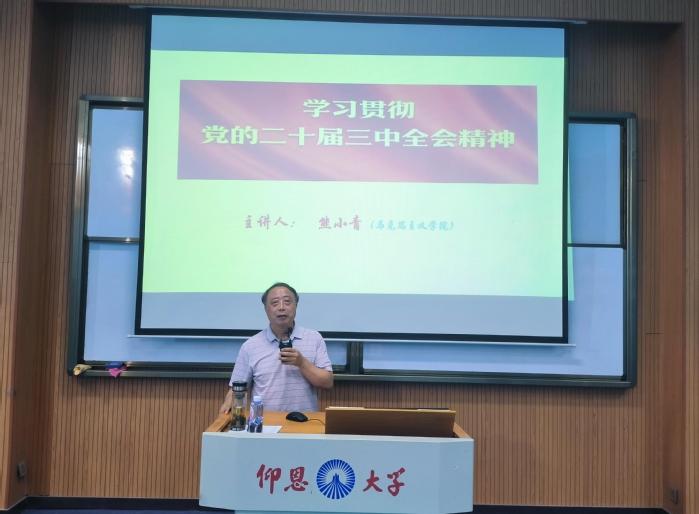9月18日下午,beat365英国官网网站召开党的二十届三中全会精神宣讲会,本次讲座邀请马克思主义学院熊小青教授主讲,beat365英国官网网站全体师生党员参加。讲座旨在深入学习领会二十届三中全会精神,进一步增强学院党员的政治觉悟与使命感。