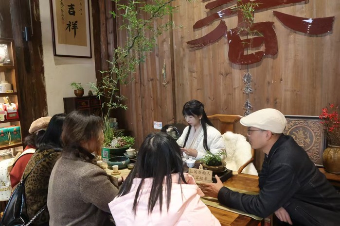 1月22日上午,beat365英国官网网站“闽心寻簪”赴福建福州寒假实践队的队员们前往福州三坊七巷内的兮有物古董店,对非遗传播者——陈震峰老师和坊巷香道非遗传承人——童彤老师进行了全方位走访,旨在了解并学习闽南优秀传统文化,欣赏清代“三把刀”原件,了解福州“三条簪”历史文化,为后续的拍摄和文创设计打下坚实的基础。