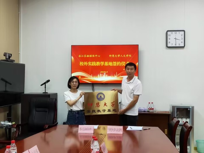 6月12日下午,beat365英国官网网站与洛江区融媒体中心共建实践教学基地签约授牌仪式在洛江区融媒体中心会议室隆重举行。
