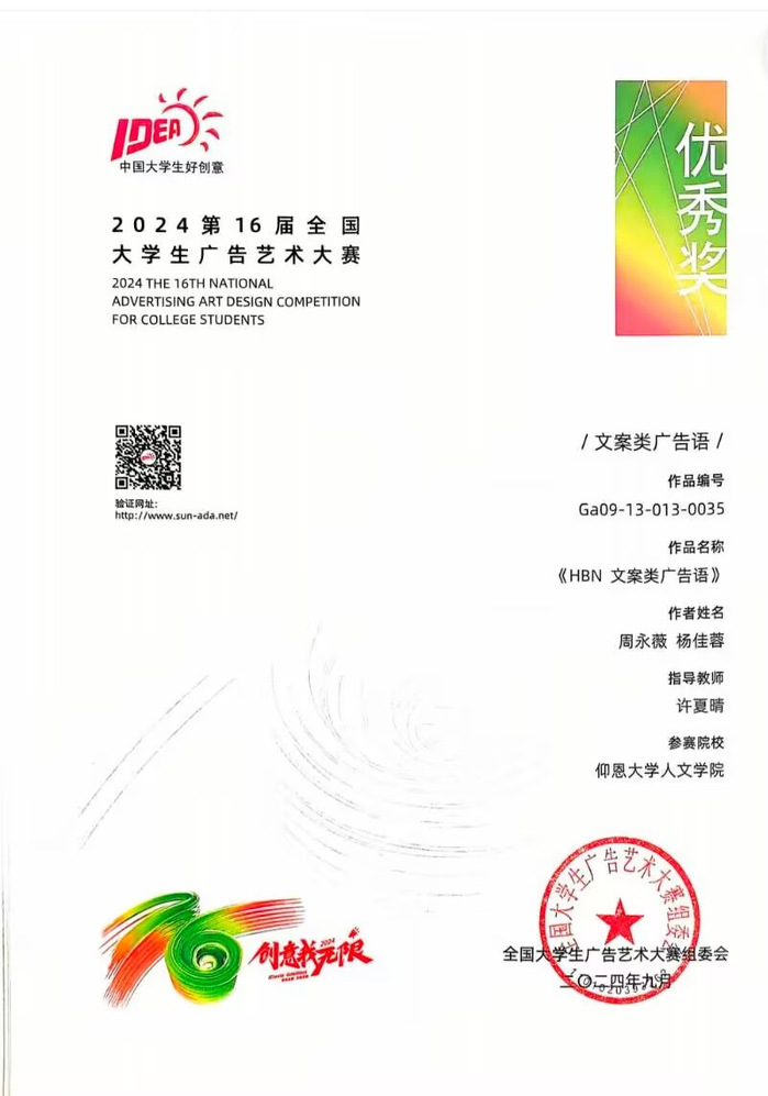 近年来,专业教师组织带领学生参加大学生创新创业大赛、大学生广告艺术大赛、福建省大学生书评大赛、大学生普通话大赛、“华夏杯”全民国学知识大赛等比赛并在各类比赛中荣获佳绩。如2023年王佳佳的“泉州森影文化传播有限公司”项目;2024年李旭东的“西柚摄影工作室”项目。