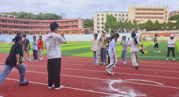 跳绳比赛中,人文学子脚步轻快,节奏稳定,动作连贯流畅,在规定时间内不断突破计数上限。最终,品牌传播系的杨俊雄同学在男子30秒双跳摇中取得了第四名的好成绩。