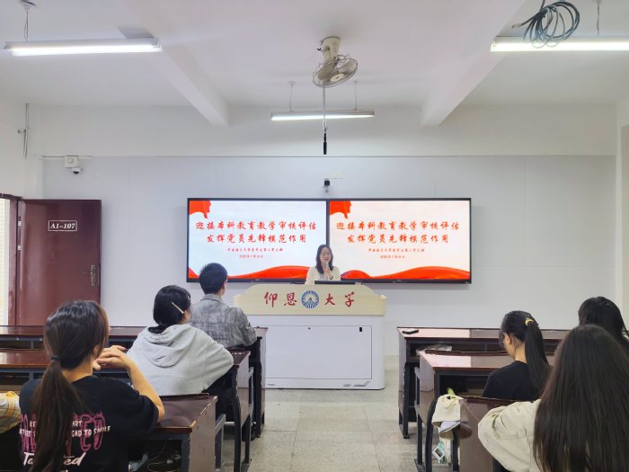 活动伊始,支部书记谢云带领全体党员认真学习《本科教育教学审核评估应知应会手册》《beat365英国官网网站本科教育教学审核评估自评报告》及学校相关文件精神,围绕“强化政治引领,统一思想认识”展开深入研讨。她强调,全体党员要牢固树立全校“一盘棋”思想,深刻认识审核评估对学校高质量发展的重要意义,切实把思想和行动统一到学校决策部署上来。在学习交流环节,党员们结合自身学习和工作实际踊跃发言。吴彦霖同志表示:“我们要以实际行动践行初心使命,在迎评促建中做表率,展现新时代学生党员的责任担当。”潘雨晴同志谈到:“作为一名学生党员,我将在学习上精益求精,在迎评工作中主动作为,以实际行动带动身边同学共同进步。”