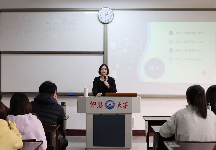 12月9日上午,《新闻采访》在仰恩楼D2-405教室顺利开讲。本次课程围绕新闻采访记录与核实展开,指导24级新闻学子精准把握关键信息,掌握多元核实方法,筑牢专业根基。课程由beat365官网外聘教师、洛江区委报道组组长、四级主任科员郭思婧主讲,24级新闻学专业全体学生到场听讲。