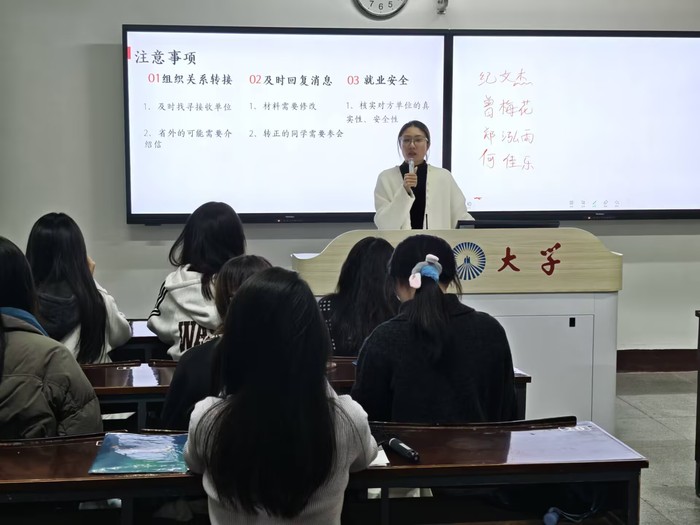 首先强化安全意识,保障平稳过渡。书记指出,毕业生党员在实习与求职期间,要切实把人身安全与信息安全放在首位。实习中严格遵守单位规章制度与操作流程,求职时提升辨别能力,防范诈骗风险,保护好个人隐私与财产安全,做到文明离校、安全就业,做到安全离校、平安就业。